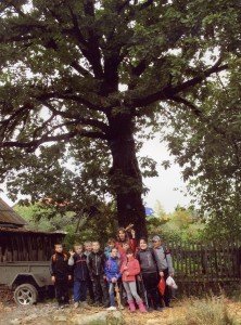 Нам хотелось подойти к дубу, чтобы погладить его, смерить руками толщину и зарядиться энергией, но с улицы это невозможно – дуб стоит за старым забором в частном владении. Мы познакомились с жителями дома, и нам разрешили пройти к дубу через двор. Около дуба было много мусора, на его могучий ствол опирались ржавые металлические уголки. Совсем рядом – яма с растительными остатками.